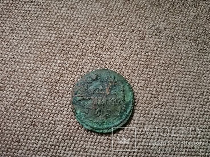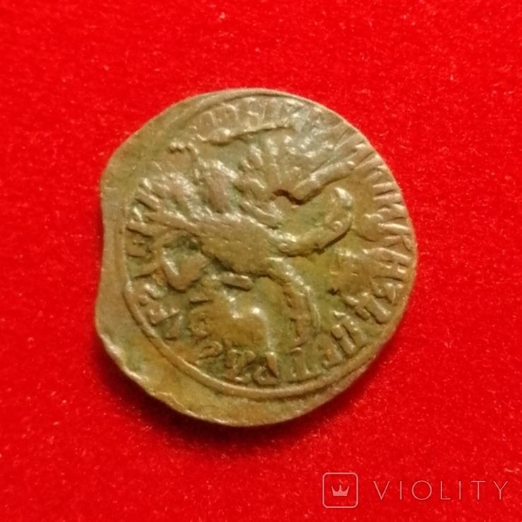 Доброго вечера. :) Интересный перечекан из копейки Петра Алексеевича с явными следами от двух монет. Проход на украинском аукционе. Фото прилагаю. :hi: С уважением.