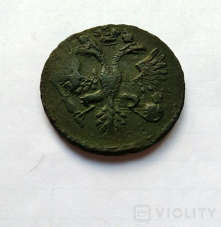 Свежий проход деньги 1734 года, ЦФН №24. Перья в хвосте расположены в 4-е ряда. Монета со старта в 1 грн., через 21 ставки финишировала с ценой 159 грн. Проход на аукционе 28.05.2023 года. Фото прилагаю. С уважением.
