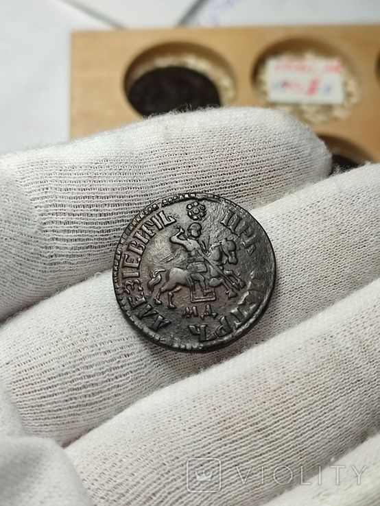 Сегодняшний проход копейки 1705 года, БК. Петр Алексеевич. Приказ Большой Казны. Набережный монетный двор. Проход 03.03.2024 года, на украинском аукционе. Гурт гладкий. Со старта в 1 грн., через 37 ставки, финиш с ценой 1 205 грн. Монета не из земли. Фото прилагаю.