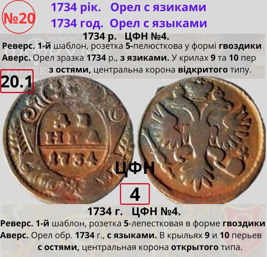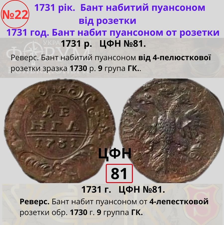 Топ-50 монет номиналом "денга" 1730-1754 гг.