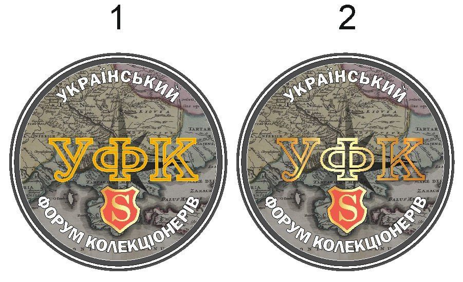Логотип повинен лаконічно і досить точно відображати цілі та завдання форуму. Пропоную на срібнику пустити по контуру візитку-Український форум колекціонерів