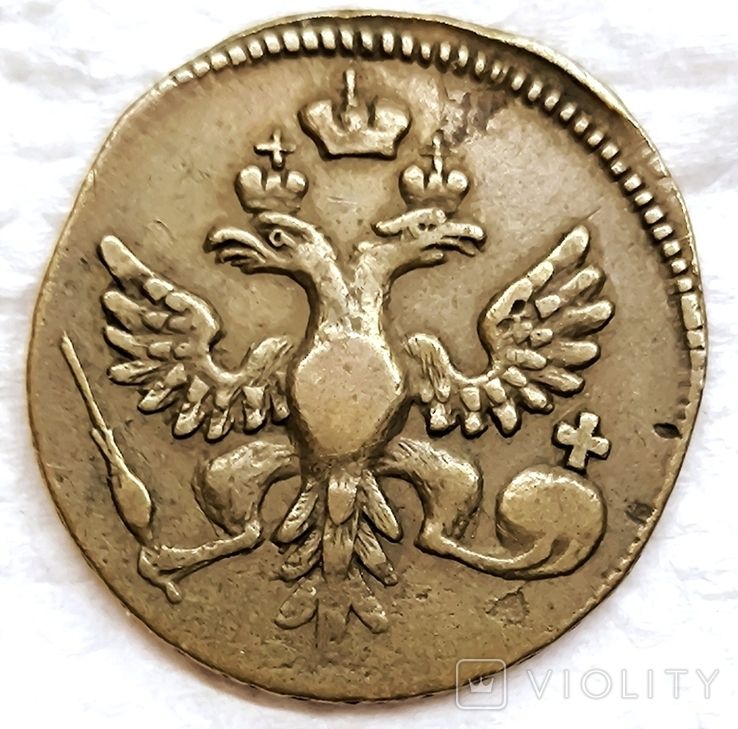 Позавчерашний проход деньги выпуска Временного монетного двора, Плащильная Мельница на р. Яуза, г. Москва, 1735 года. Розетка цветок гвоздики. Гурт сетчатый. Монета из земли, хорошо реставрирована. Со старта в 1 гривну, через 11 ставок, достигла финишной цены в 222 грн. Проход на украинском аукционе 04.10.2025 года. Фото прилагаю.