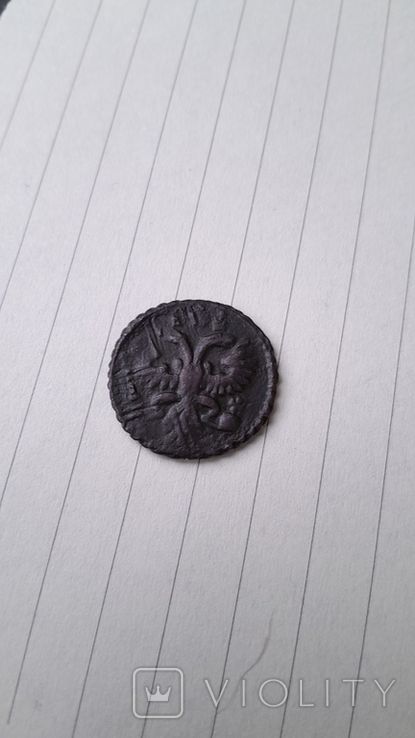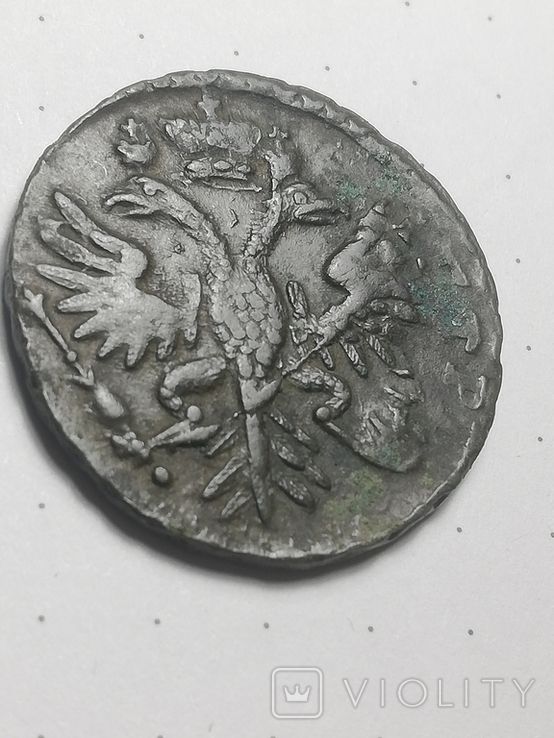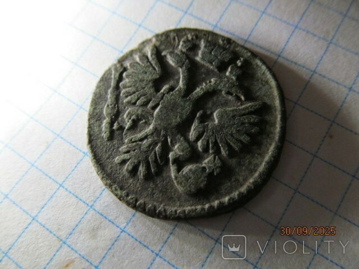 Недавний проход деньги перечекана, с явными следами от копейки Петра Алексеевича, выпуска Красного монетного двора, 1731 года, г. Москва. Реверс: Перевязь банта акантовых ветвей,- встречается не часто. Гурт сетчатый. Монета из земли, мыта водой. 1-й шаблон реверса. Со старта в 1 гривну, через 12 ставок, достигла финишной цены в 179 грн. Проход на украинском аукционе 02.09.2025 года. Фото прилагаю.