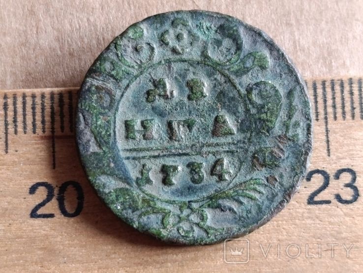 Недавний проход деньги выпуска Красного монетного двора 1734 года. Розетка 4-е лепестка. 4-й шаблон реверса. Гурт сетчатый. Со старта в 1 гривну, через 7 ставок, достигла финишной цены в 300 грн. Монета из земли, мыта водой. Проход на украинском аукционе 26.09.2025 года. Фото прилагаю.