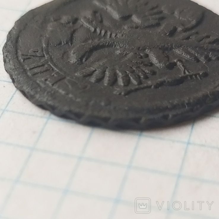Вчерашний проход не частой разновидности полушки, перечекана выпуска Красного монетного двора 1734 года с явными следами от "крестовой" копейки Петра II. ЦФН № 35. Гурт сетчатый. Со старта в 1 гривну, через 65 ставок, достигла финишной цены в 471 грн. Монета из земли, хорошо реставрирована. Проход на украинском аукционе 12.10.2025 года. Фото прилагаю.