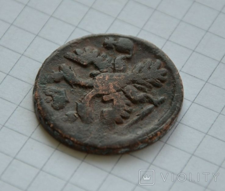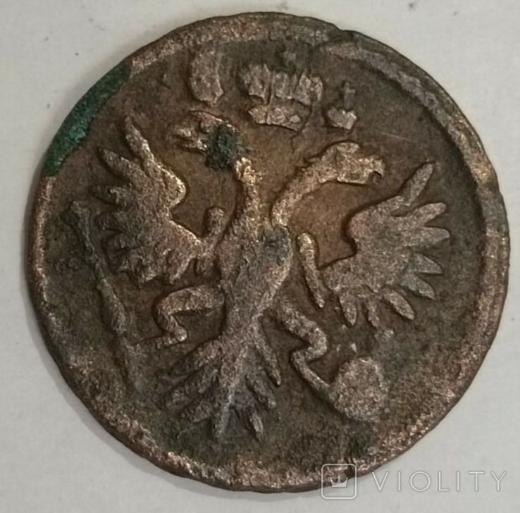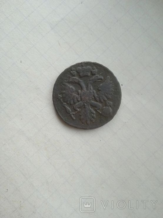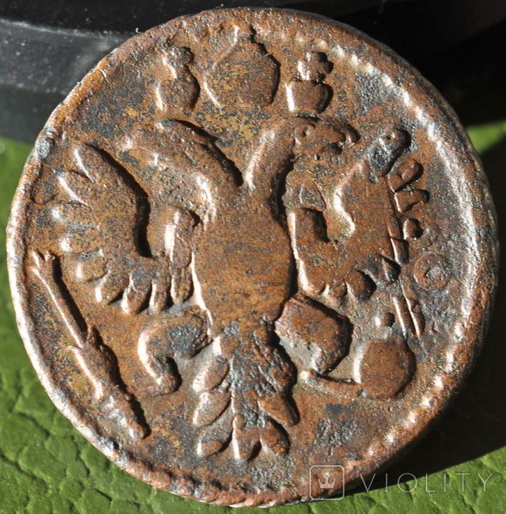 Недавний проход деньги перечекана, со слабыми следами от копейки Петра Алексеевича, выпуска Красного монетного двора, 1731 года, Гурт сетчатый. Монета из земли. Самый распространенный 3-й шаблон реверса. Со старта в 1 гривну, через 20 ставок, достигла финишной цены в 102 грн. Проход на украинском аукционе 01.09.2025 года. Фото прилагаю.