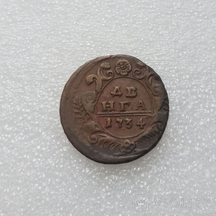Доброго вечера. :) Недавний проход деньги выпуска Красного монетного двора 1734 года. Аверс: Между перьями в крыльях и хвосте орла ости. 3-й шаблон реверса. Гурт сетчатый. Со старта в 1 гривну, через 41 ставку, достигла финишной цены в 530 грн. Монета не из земли. Проход на украинском аукционе 19.10.2025 года. Фото прилагаю. :hi: С уважением.
