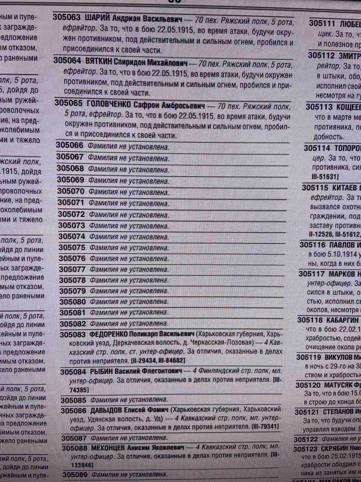 Солдат служив судячи по порядковим номерам нагород, або в 70-му Ряжскому полку, або в 4-му Кавказському стрілковому полку. Період нагороди - весна 1915 р.