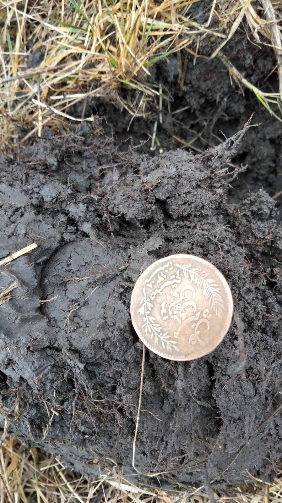 Як? Яким чином ця монета опинилась в цьому забиченому Богом забутому місці!? Мабуть місцевий поміщик тих часів був на сафарі в Тунісі. Не інакше. З першого погляду подумали, що це 3 коп Миколи 2-го, а коли помили в калюжі - німа сцена...