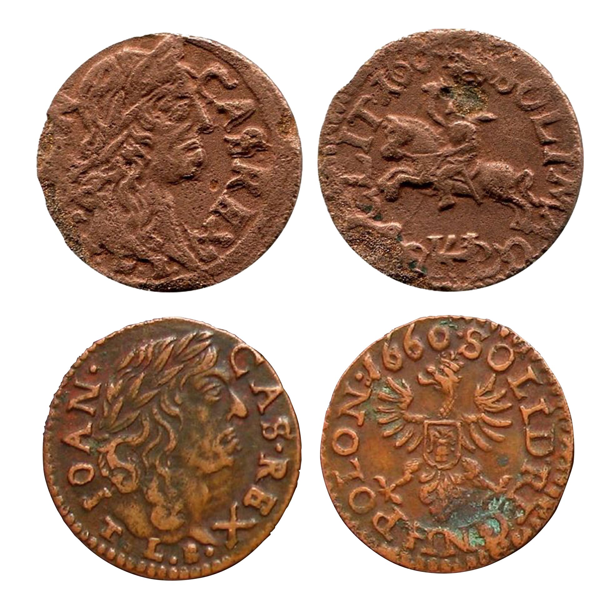 - З монограмами: Варіюються залежно від короля (Ян Казимир, Михайло Корибут Вишневецький) та монетного двору, часто у вигляді літер або стилізованих символів