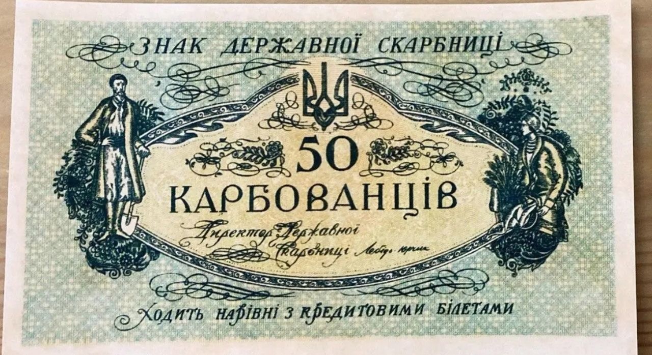 50 карбованців "лопатки", отримали свою назву завдяки зображення дядька з лопатою.