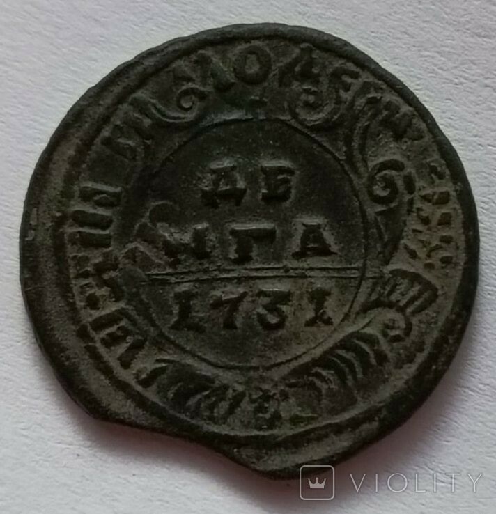 Вчерашний проход на украинском аукционе 27.09.2023 года, интересной деньги 1731 года. Перечекан с явными следами от копейки Петра Алексеевича. Со старта в 380 грн., через 2 ставки финиш с ценой в 382 грн. Фото прилагаю.