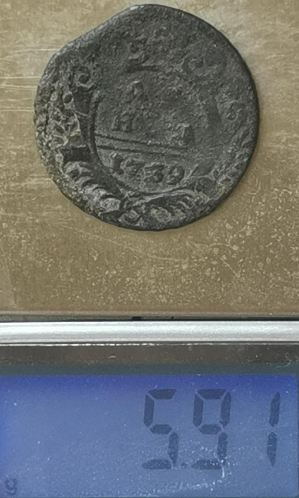 Доброго вечера. Рекордсменка в перевесе 1741 года среди деньги выпуска Екатеринбургского монетного двора и в целом по году, с весом в 11,19 гр., который составляет 136,63%, от установленного среднего веса для деньги в 8,19 гр. Фото прилагаю. С уважением.