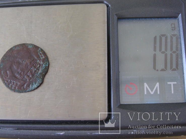 Доброго вечера. :) Рекордсменка в перевесе 1745 года среди деньги выпуска Красного монетного двора с весом в 10,62 гр., который составляет 129,67%, от установленного среднего веса для деньги в 8,19 гр. Взвешивание проводилось на лабораторных весах. Фото прилагаю. :hi: С уважением.