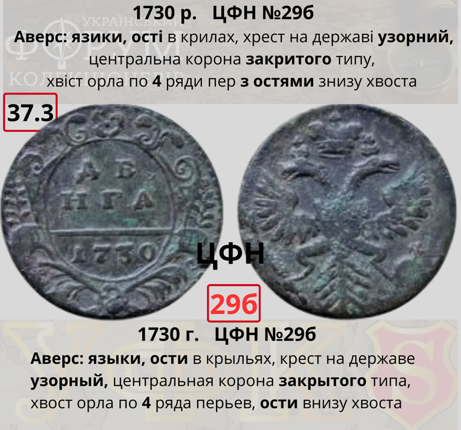 Повернутись до “Каталог-довідник штемпелів деньги та полушки 1730-1754 рр.”
