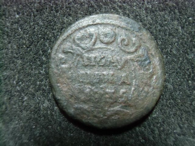 Описание: Полушка 1735 год. Плащильная Мельница на р. Яуза, г. Москва.