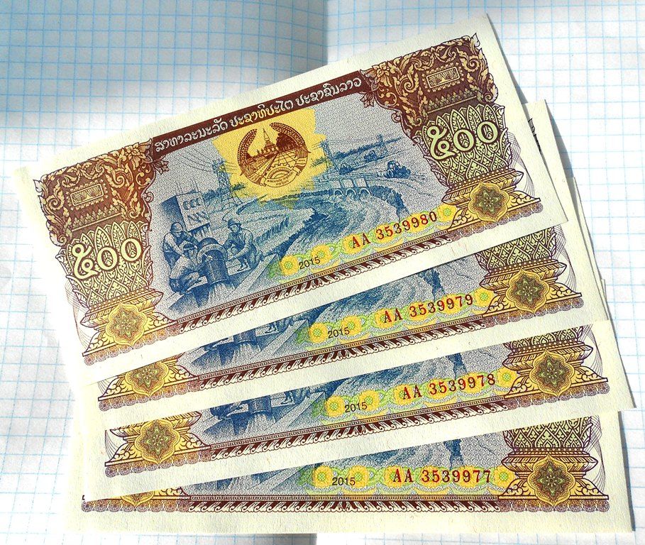 Лаос 4 шт. по 500 кiп 2015 р. UNC.