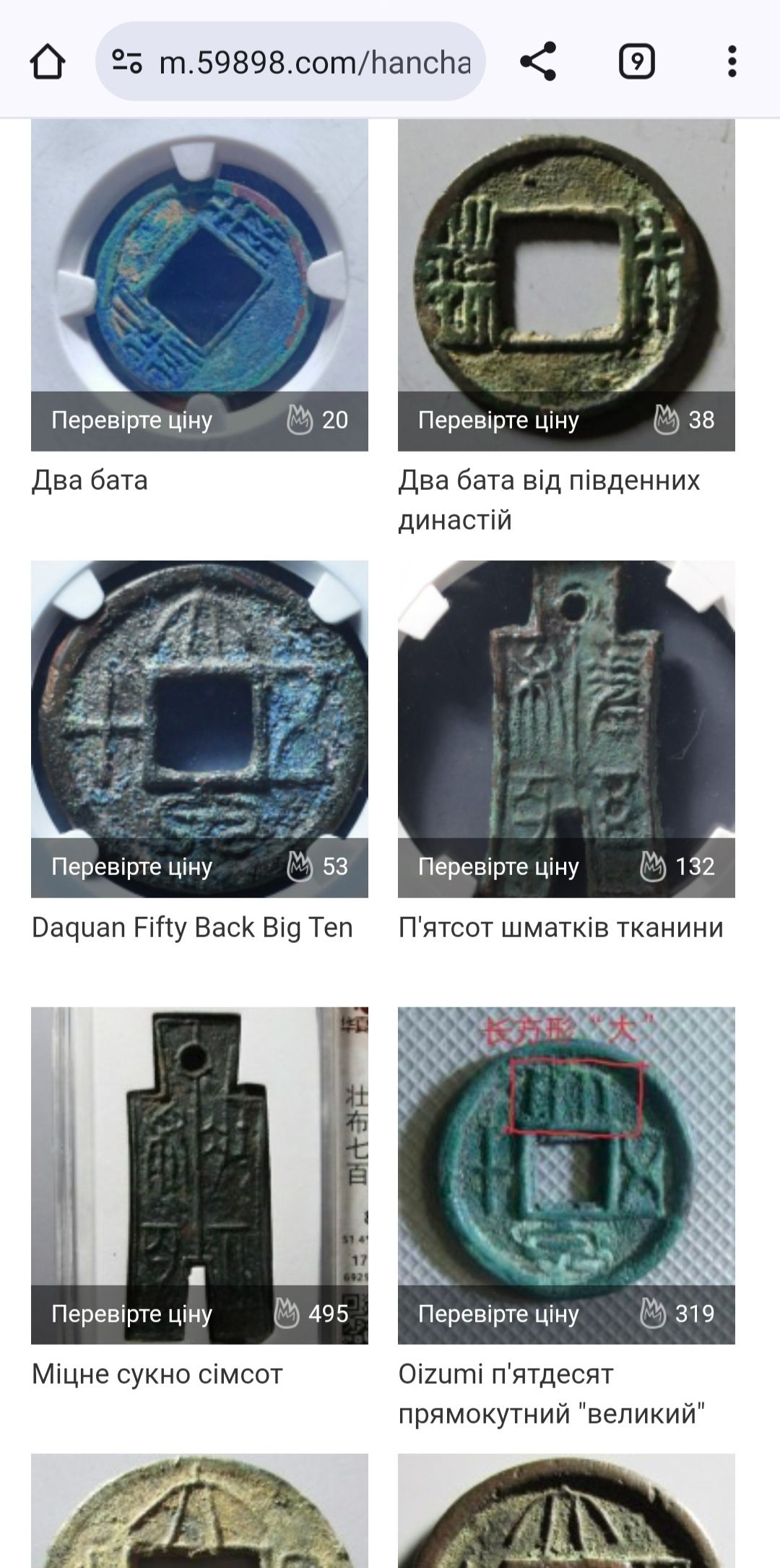 Такий вигляд має стартова сторінка китайського сайту "Мережа цін на стародавні монети" https://www.59898.com/
