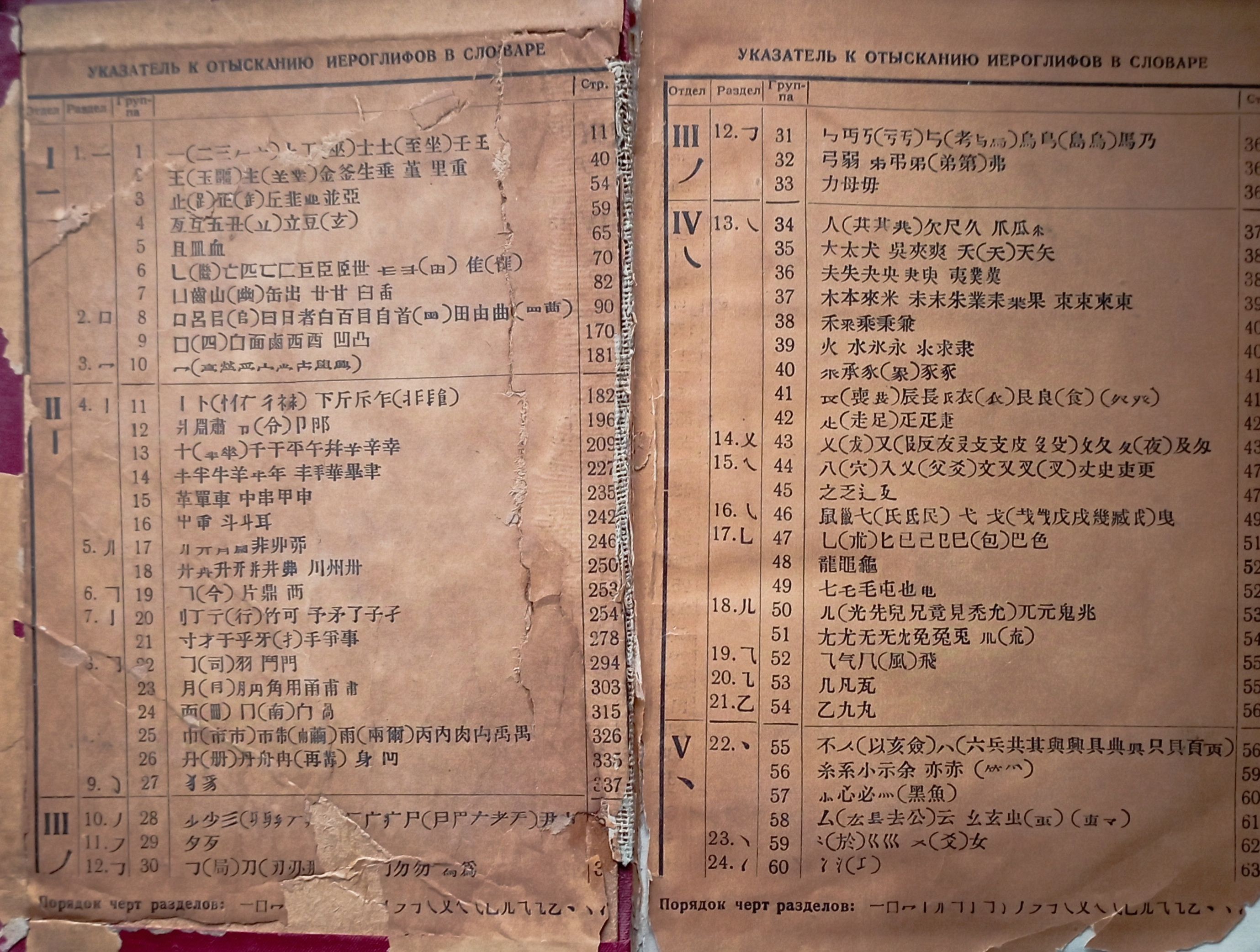 Вказівник до пошуку ієрогліфів у словнику має такий вигляд:
