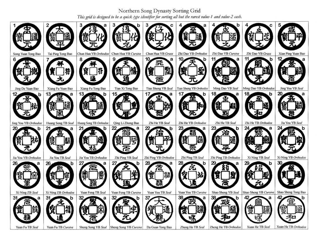 Таблиця визначення няньхао на монетах китайської династії Північна Сун (北宋; 960 - 1127)