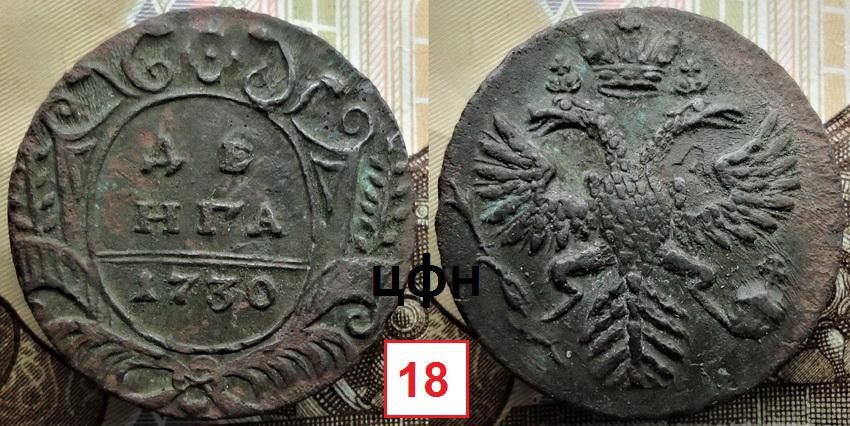 Доброго вечера. Просьба в тему предоставлять фото только деньги 1730 года. Выпуск деньги производился на Красном монетном дворе г. Москва исключительно путем перечекана. Фото необходимы для исследования производства монеты, составления технологических цепочек (ТЦ) замены штемпелей, определение редкости отдельных разновидностей и составления статистики известных экземпляров редких разновидностей. В одной из тем мы начали составлять статистику редких разновидностей, начав с «Малого Орла». Из этого раздела в дальнейшем и будет пополняться определенная тема статистики деньги 1730 года по предоставленным фото. Редких разновидностей деньги в 1730 году имеется достаточное количество. Это видно и по классификации Руководства ЦФН. В дальнейшем на базе этих исследований будет создаваться Каталог деньги 1730 года.