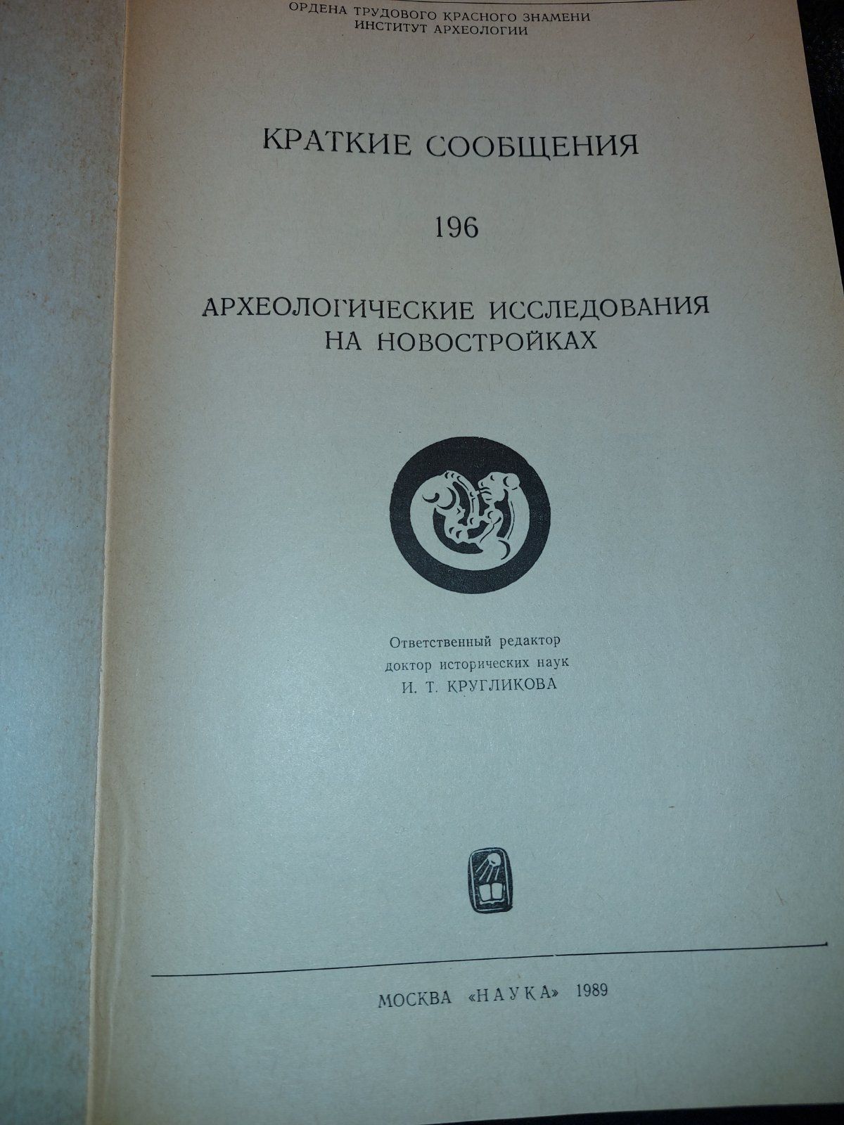 Краткі повідомлення АН СРСР Археологічні дослідження на новостройках, технологія та розрахунок і інш.
