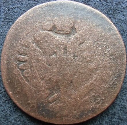 Доброго вечера. :) Фальшивая деньга с двухсторонним аверсом Московского орла, типа 1739 года со смещением штемпелей относительно друг друга на 90 градусов. Фото прилагаю. :hi: С уважением.
