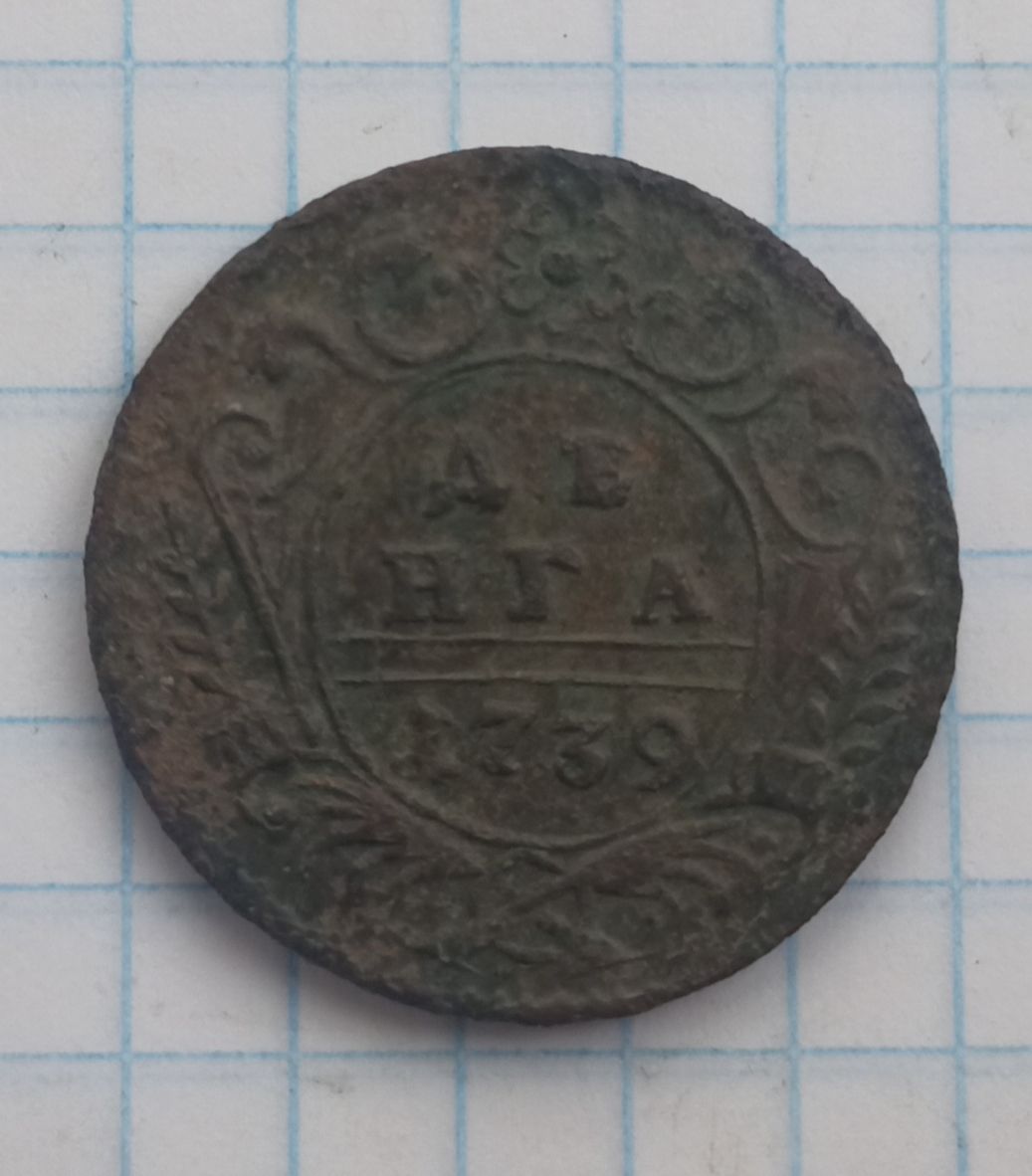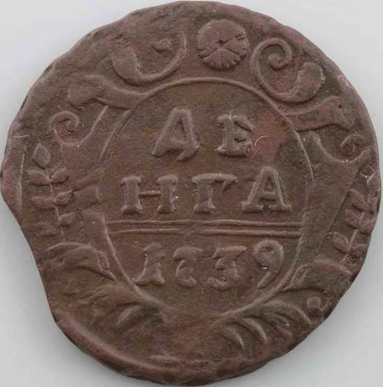 Добавлю нечастую московскую деньгу 1739 года с хорошей детализацией, что бывает нечасто для монет этого типа.