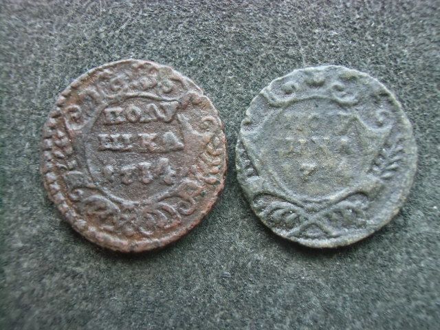 В продолжение темы штемпельных разновидностей полушки 1734 года, ЦФН №3, добавлю 6-ю одноштемпельную монету 1-й штемпельной разновидности.