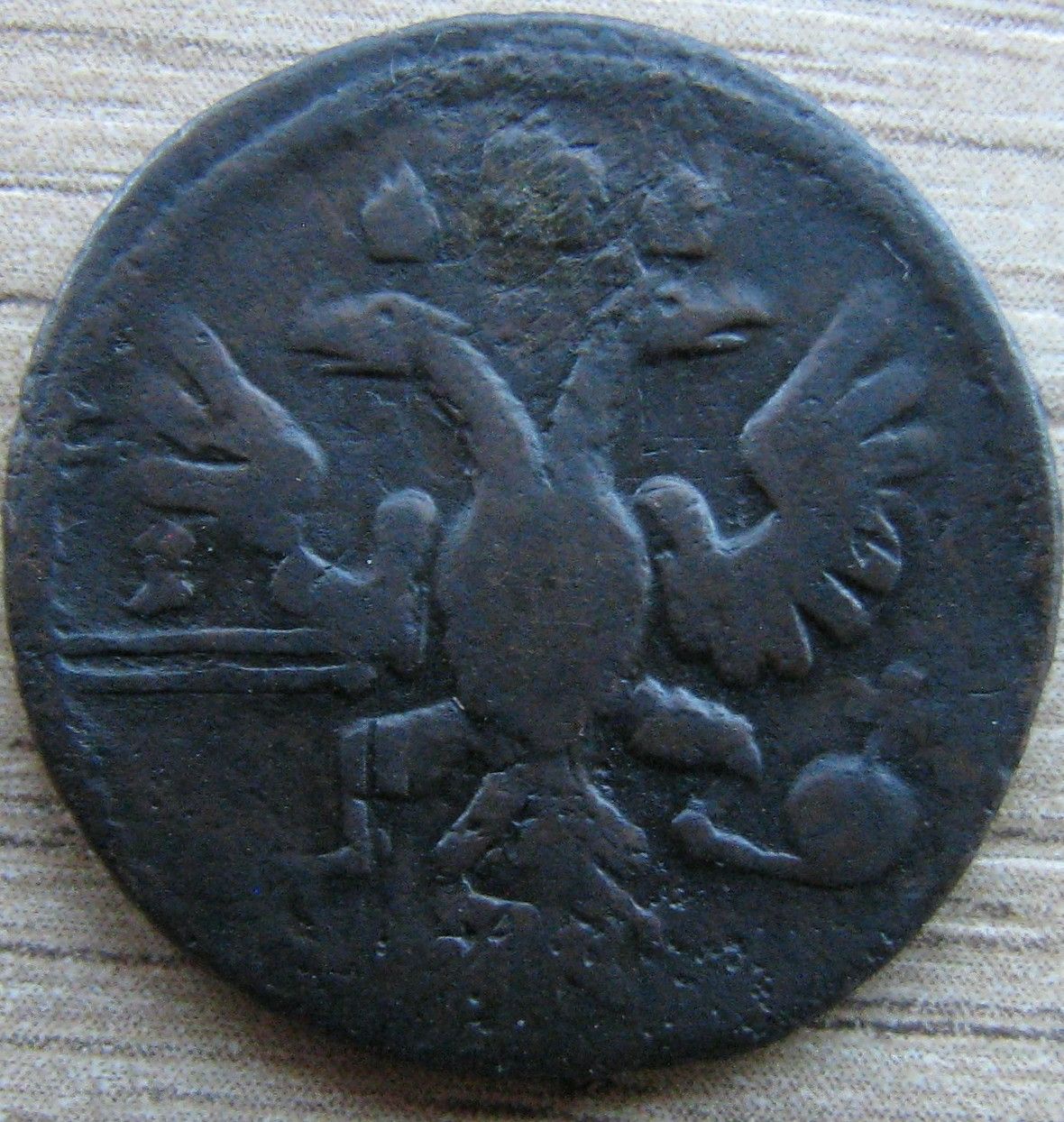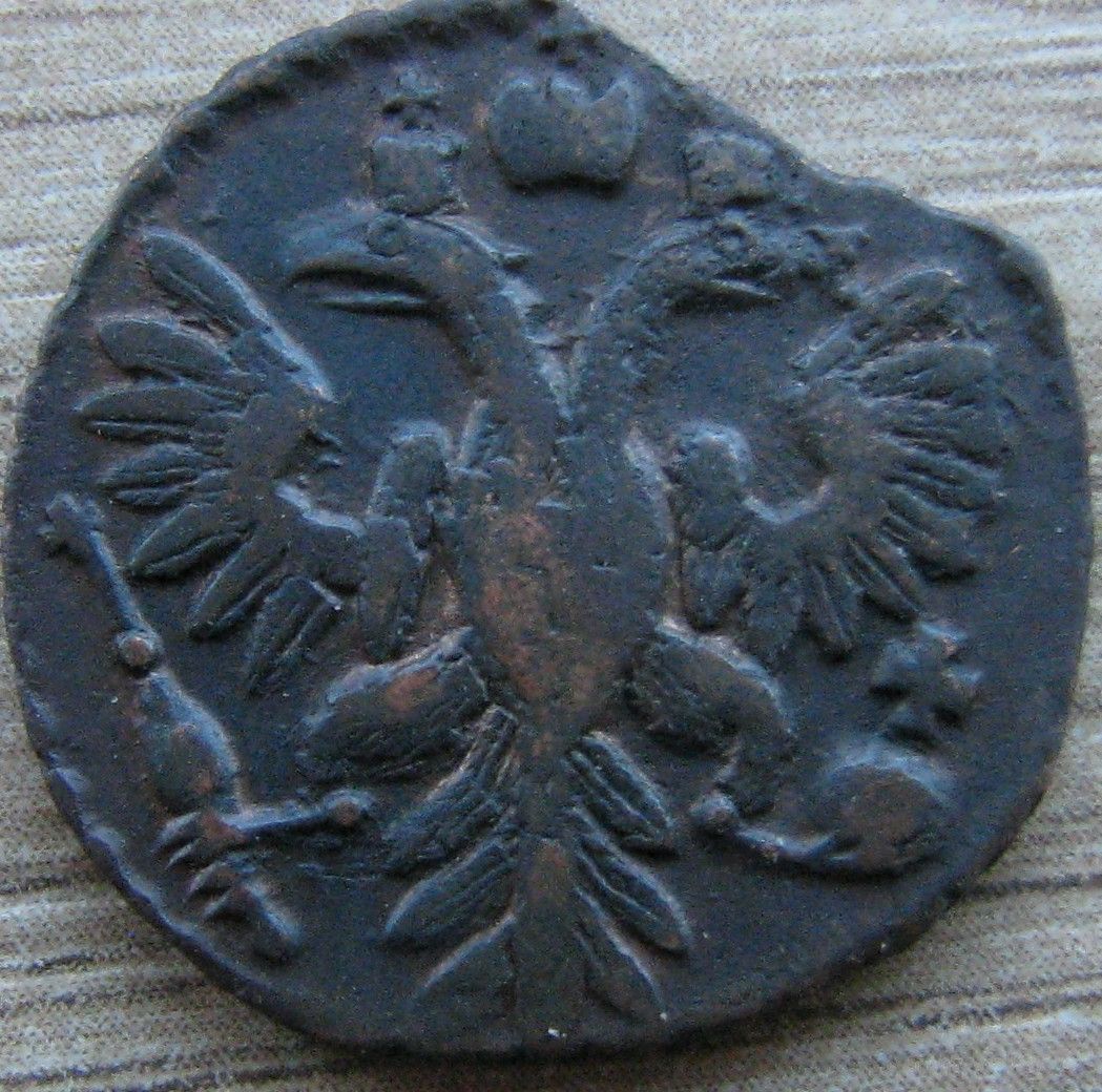 Юрий, доброго вечера. :) На реверсе Вашей полушки розетка, которую классифицируют, как розетка образца 1735г., в форме солнцеврата (в народе "свастика"). ;) Ваша полушка одна из нескольких штемпельных пар, которую можно классифицировать по Руководству ЦФН под №13, следующим образом: 13 - аверс: орёл образца 1735г., по девять перьев в каждом крыле, реверс: шаблон №2, розетка образца 1735г., в форме солнцеврата (в народе "свастика"), боковые ветви по семь листочков в каждой ветви, нижние ветви без обвязки (банта), монета встречается реже. Как пример привожу фото еще пары штемпельных разновидностей с аналогичной розеткой. :hi: С уважением.