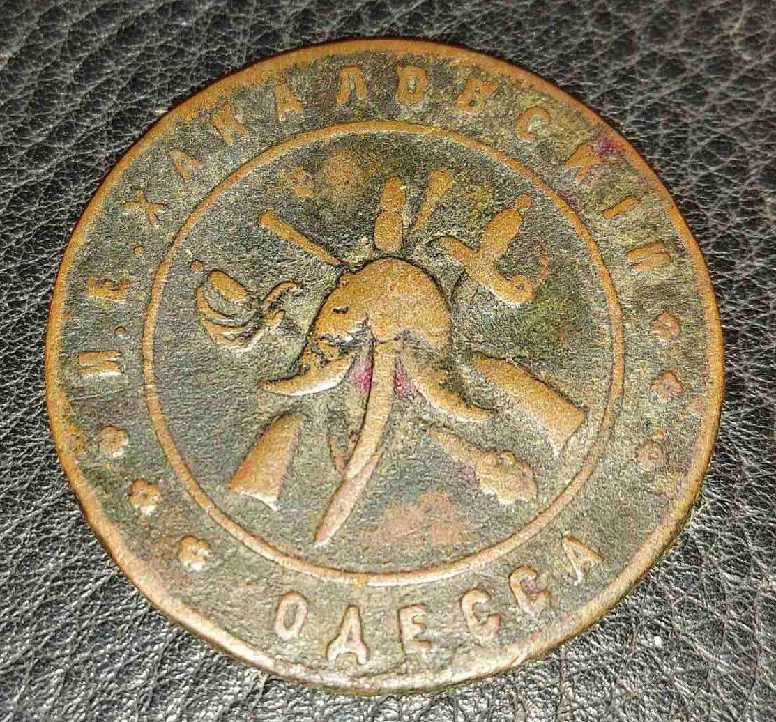 Ось наприклад монетовидний жетон - Хакаловский І.Є. м. Одесса, вул. Дерибасівська, приватний будинок № 21.