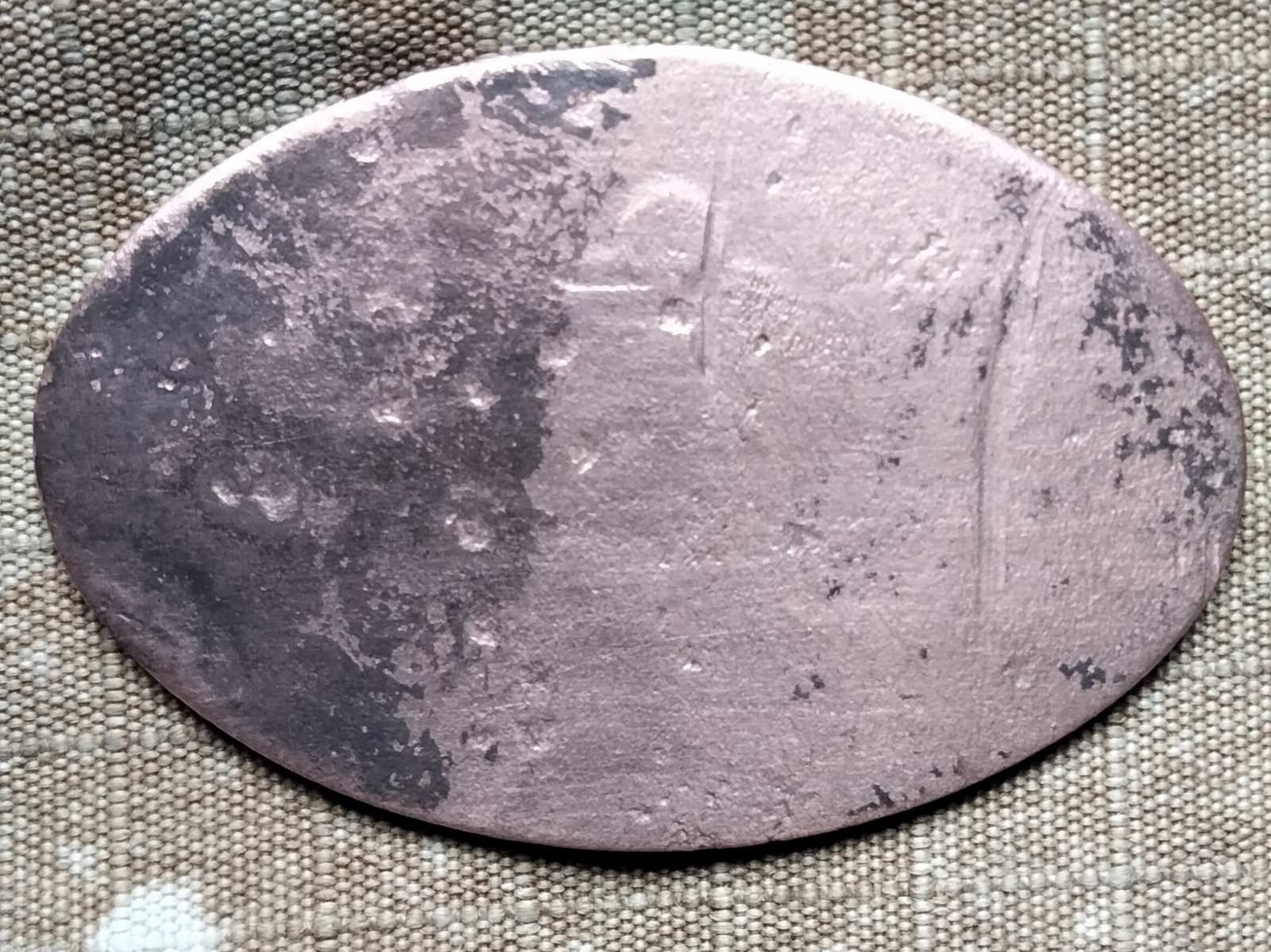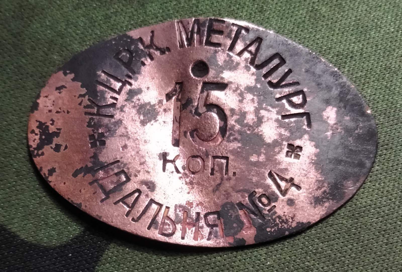 Вже добре сутеніло, але я добивав город після соняху. І черговий сигнал, викопую - овальна, трохи підігнута табличка, вся замурзана. Пішла в хаборну торбинку. Увечері помив і здивувався? Що за хня? Полковник Гугль надав трохи інфи і фото подібних жетонів. Виявляється - раритет! Сурогатні гроші. Які в 1924 р. були скасовані. Платіжний жетон їдальні КЦРК (Криворізького, Київського, Кременчуцького і т.д.) Центрального Робітничого Кооперативу часів НЕПу 20-х років совітчини. На Віоліті в 2022 р. подібний круглий жетон їдальні №5 пішов за 60 доларів...