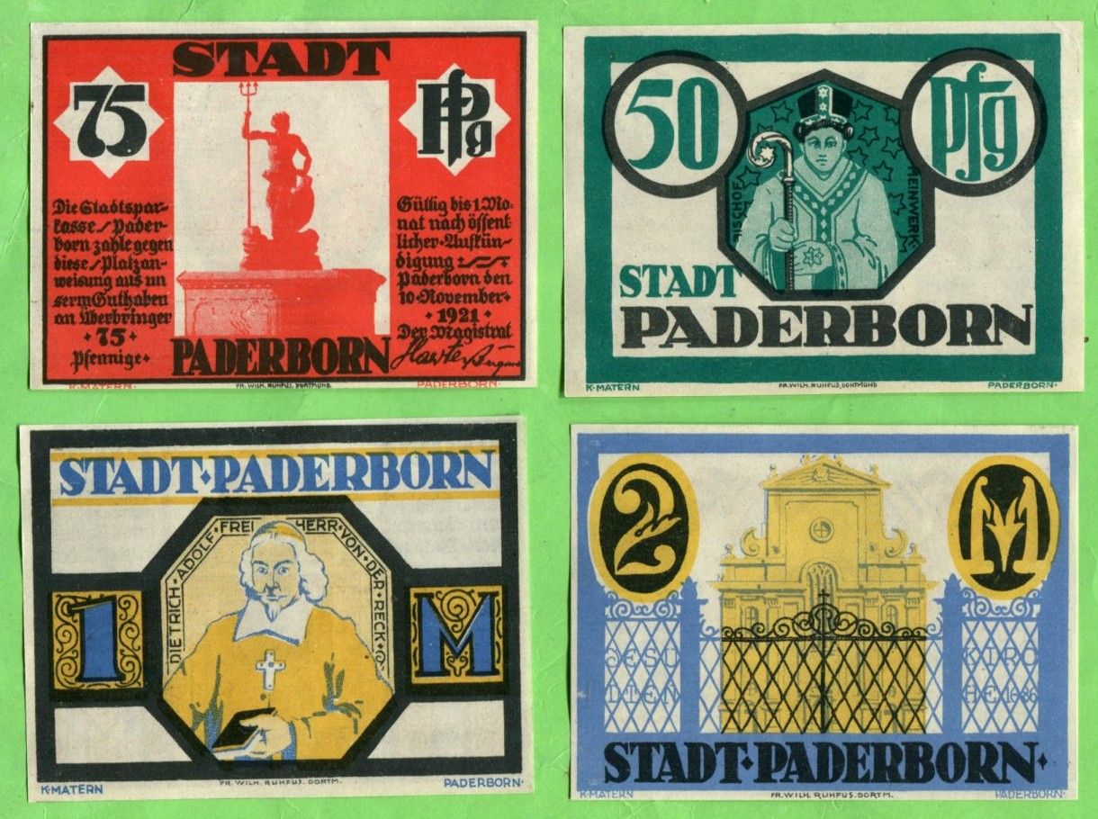 Нотгельд 50-75 пфеннигов 1-2 марки 1921 Германия Падерборн набор из 4 шт