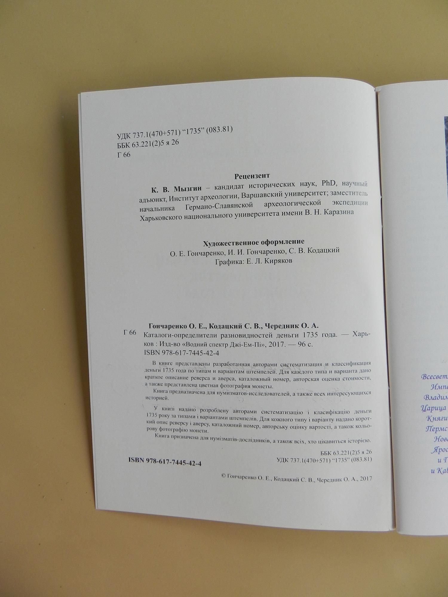 Каталоги-определители разновидностей ДЕНЬГИ 1735 г.