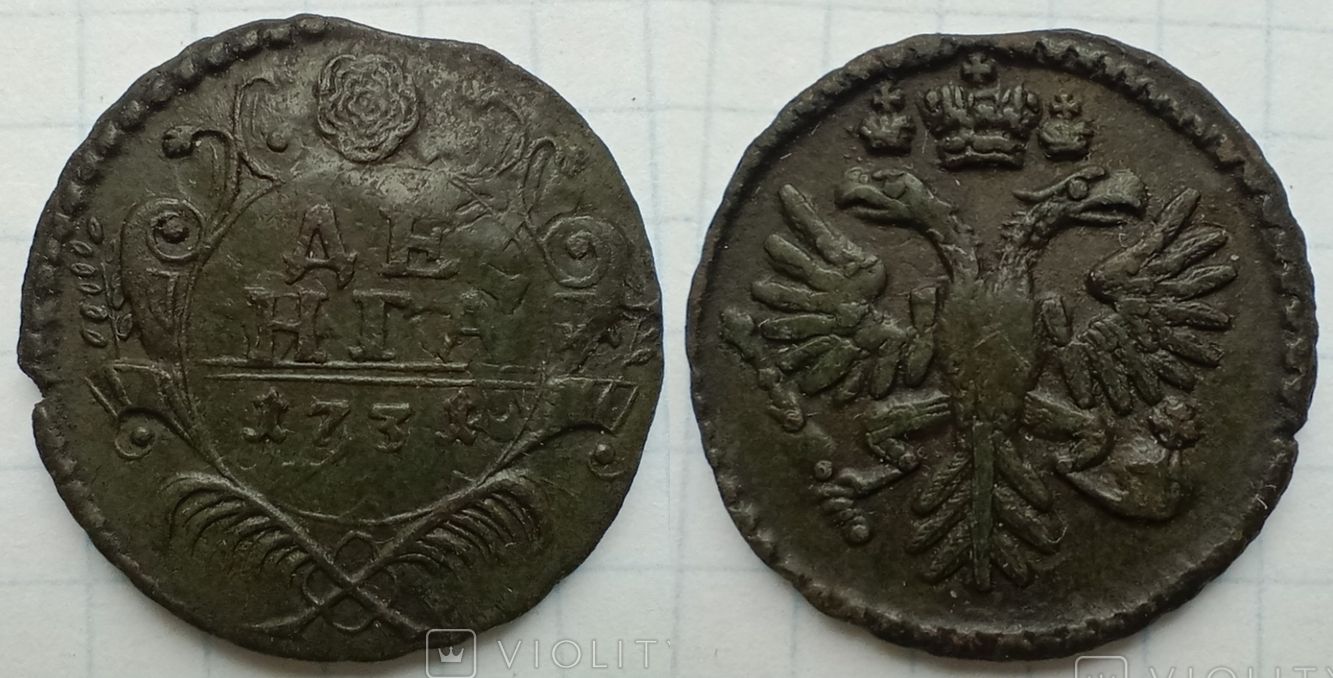 8. Денга 1731 года «Гибрид пьяного орла». Разновидность на ЦФН отсутствует