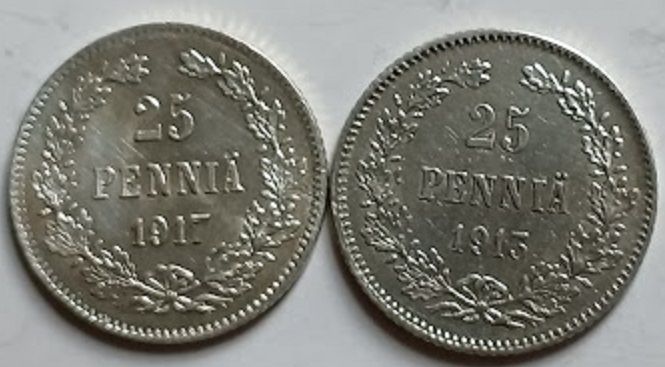 Русско-финская, 25 пени, 1913 и 1917 гг.