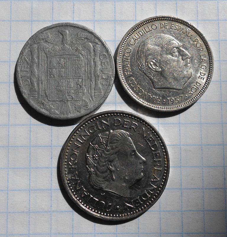 Іспанія 10 сентимів 1945 р. та інші монети.