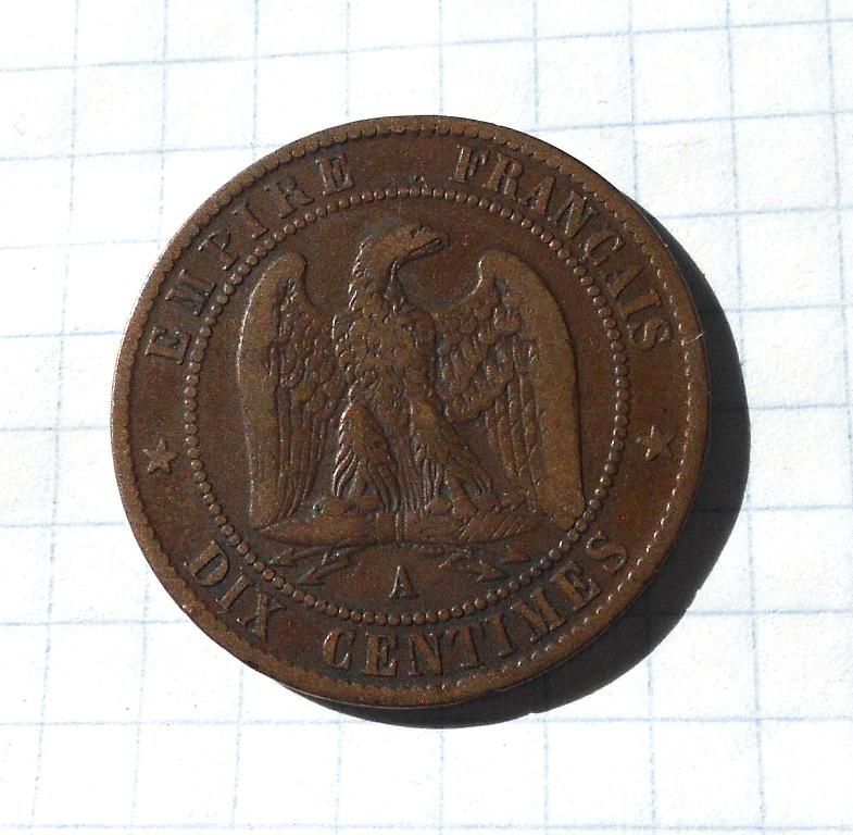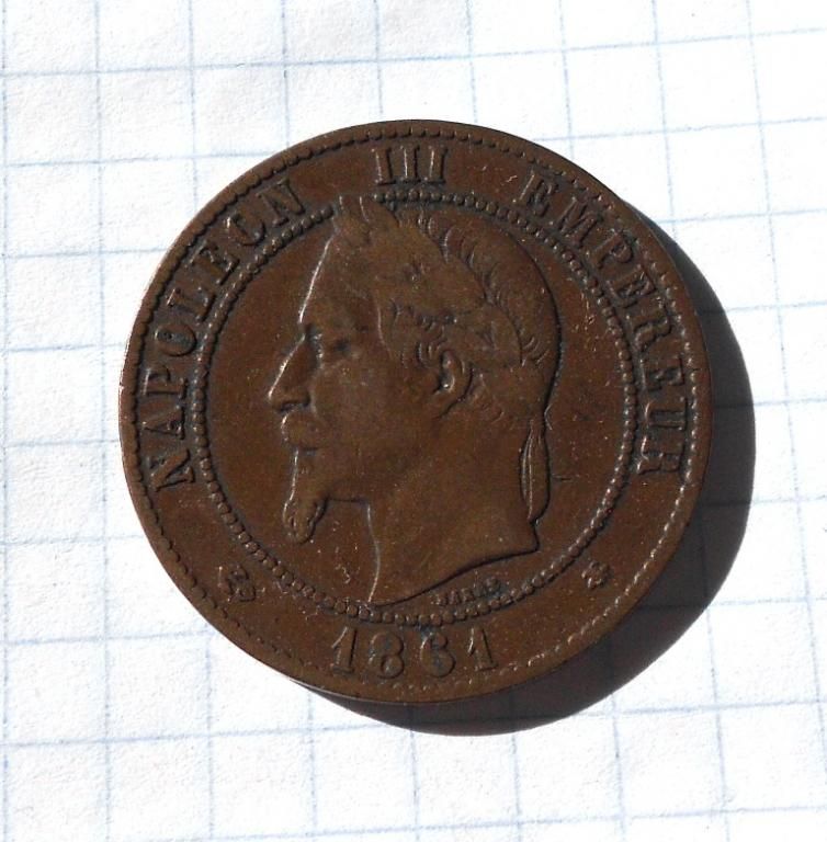 Франція 10 сантимів 1861 р. А (Наполеон у вінку).