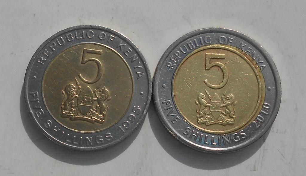 Кенія 5 шилінгів 1995 р. + 5 шилінгів 2010 р.