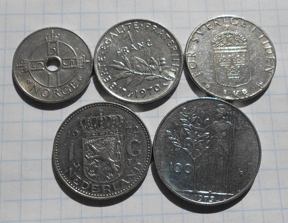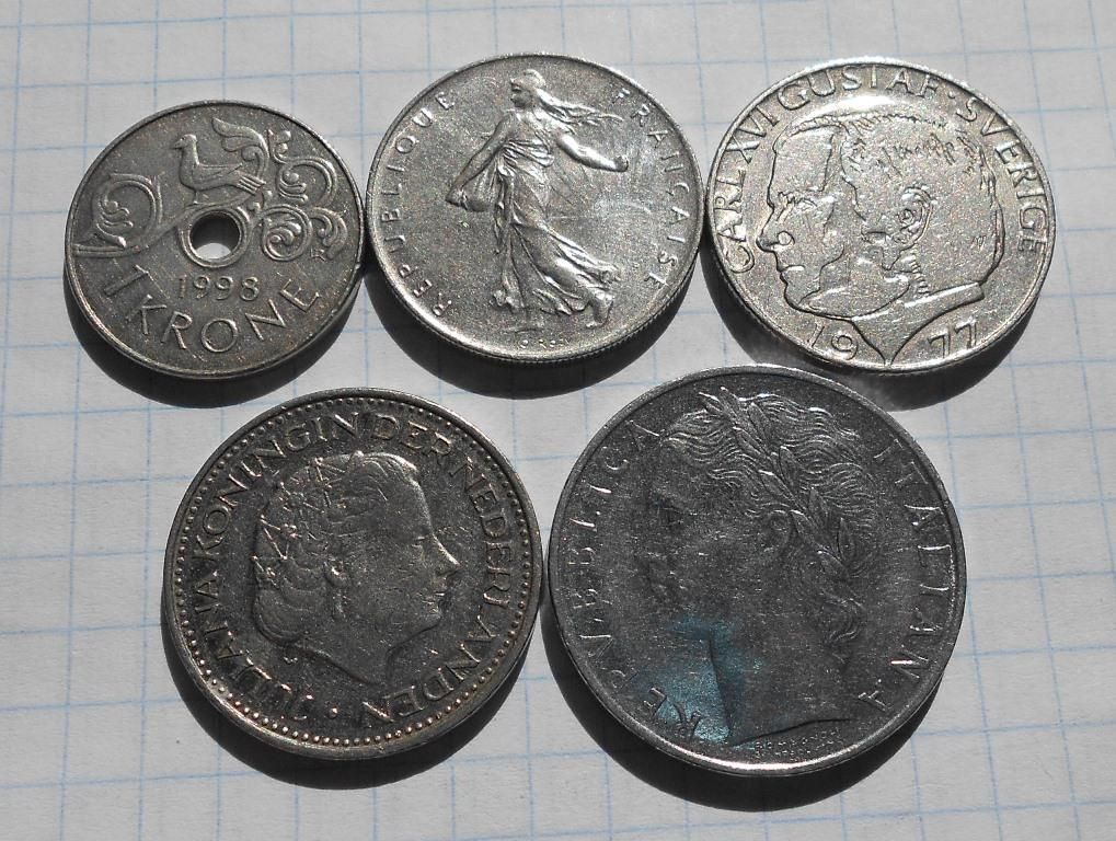 Норвегія 1 крона 1998 р. та інші монети.