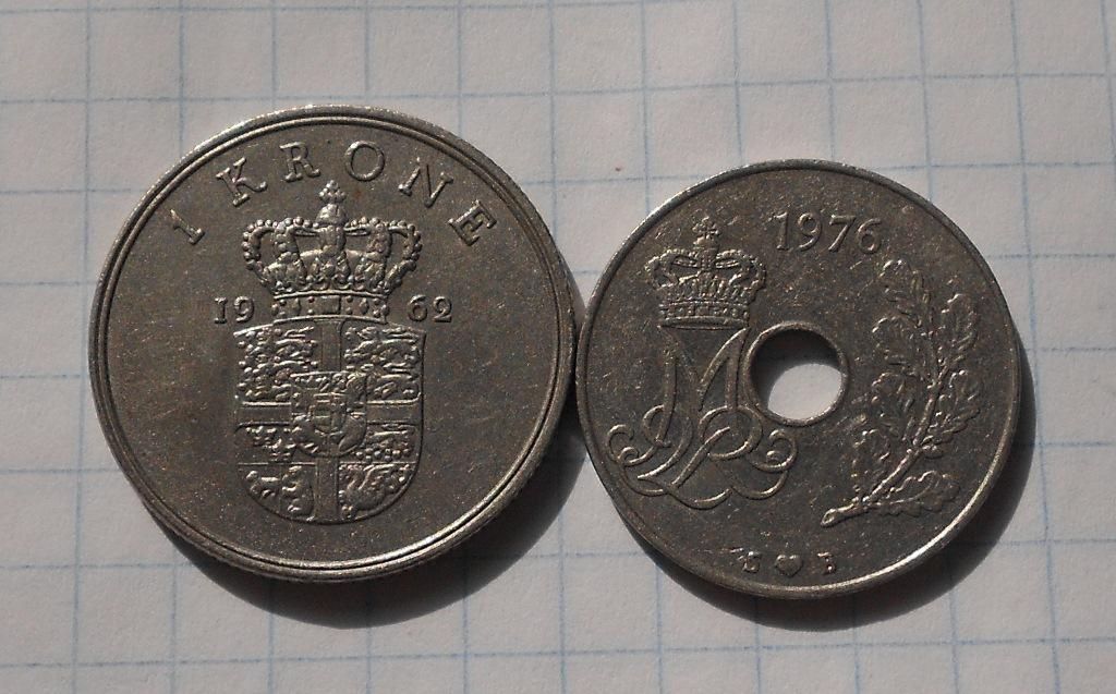 Данія 1 крона 1962 р., 25 ере 1976 р.