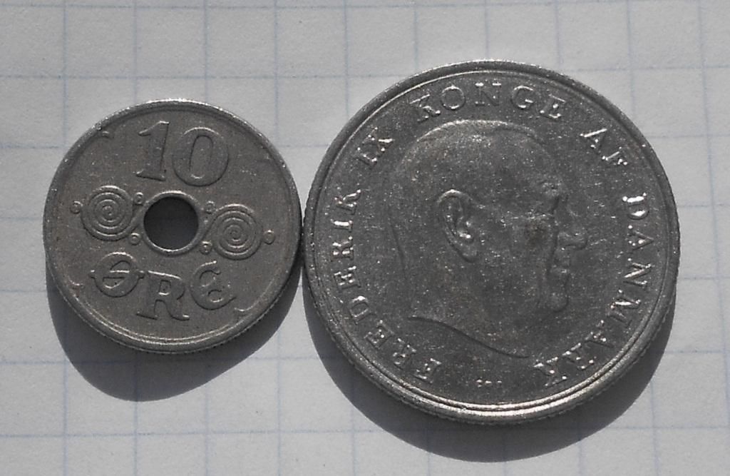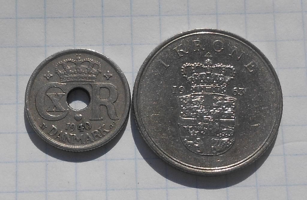 Данія 10 ере 1940 р., 1 крона 1963 р.