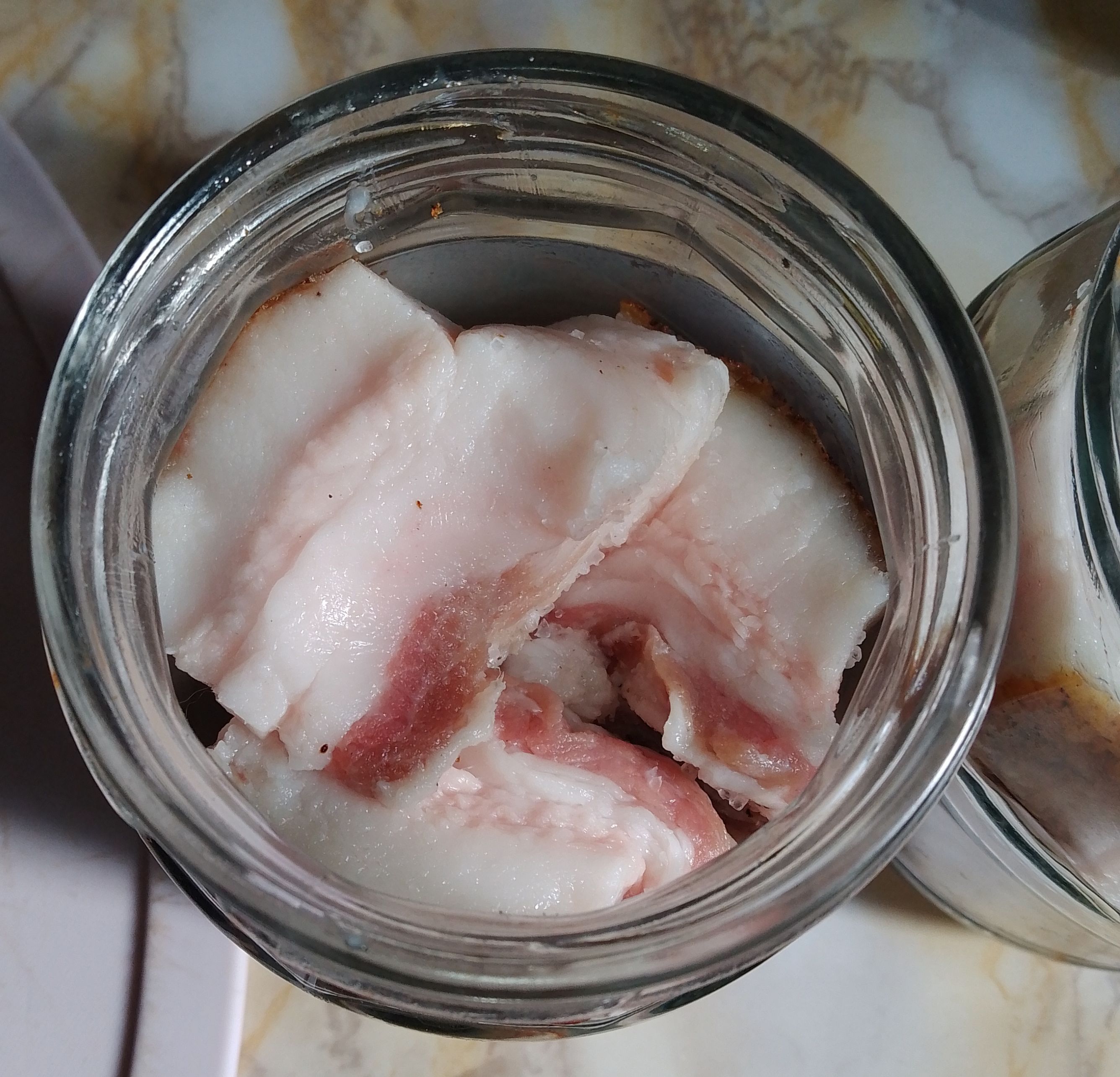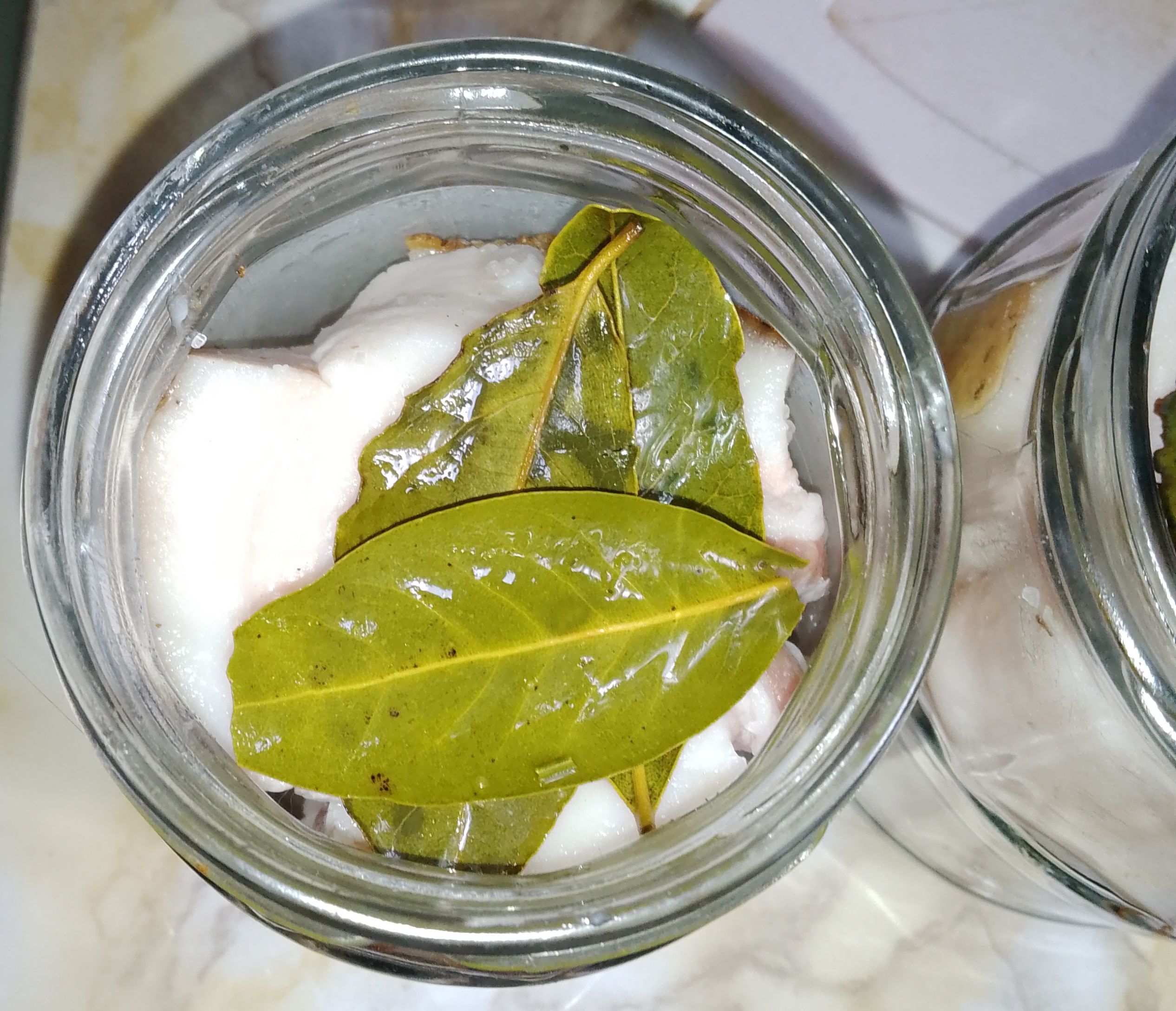 Готуємо росіл: в кип'ячу воду добавляємо сіль(сіль не шкодуємо, десь з розрахунку 200 грам на кг. сала), перець горошком духмяний та чорний, лавровий лист, інші спеції за смаком, даємо покипіти хвилин 5-7. Далі росіл повністю охолонути. Заливаємо сало, зверху кладемо лавровий лист те перці горошком з того ж росолу. Закриваємо і маринується 3-4 дні. Дане сало тривалого зберігання, також стане в нагоді в дорогу чи на тривалий виїзд.