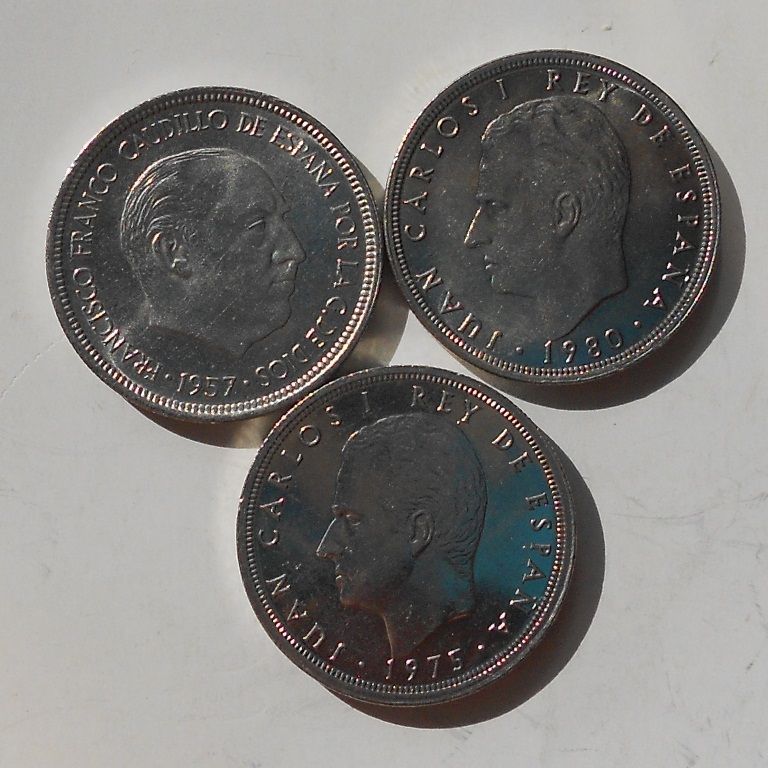 Іспанія 5 песет 1973 р., 5 песет 1980 р., 5 песет 1976 р.