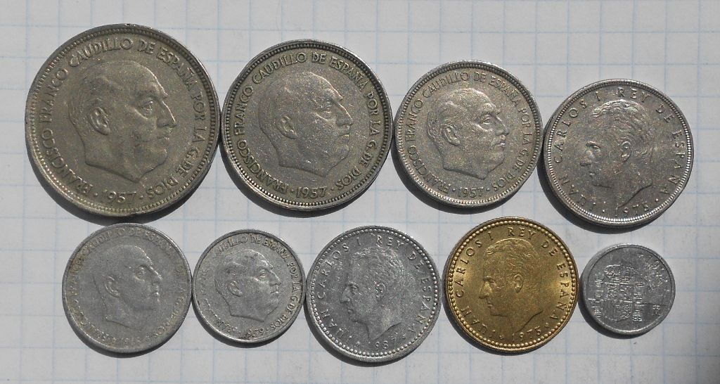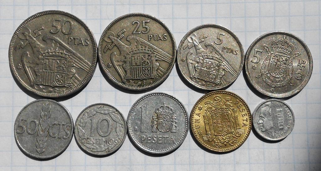 Іспанія 50 песет 1959 р. та інші монети цієї країни.