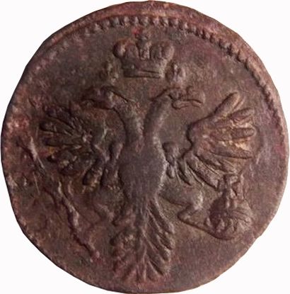 Аверс: двоголовий орел зразка 1730 р., увінчаний трьома коронами. В лапах орла: в правій - скипетр, в лівій - держава з хрестом.