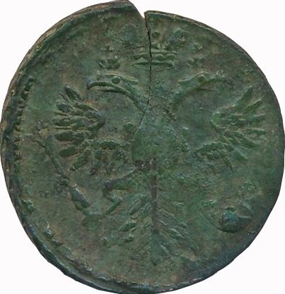 Аверс: двуглавый орёл образца 1730 г., увенчанный тремя коронами. В лапах орла: в правой - скипетр, в левой - держава с крестом.