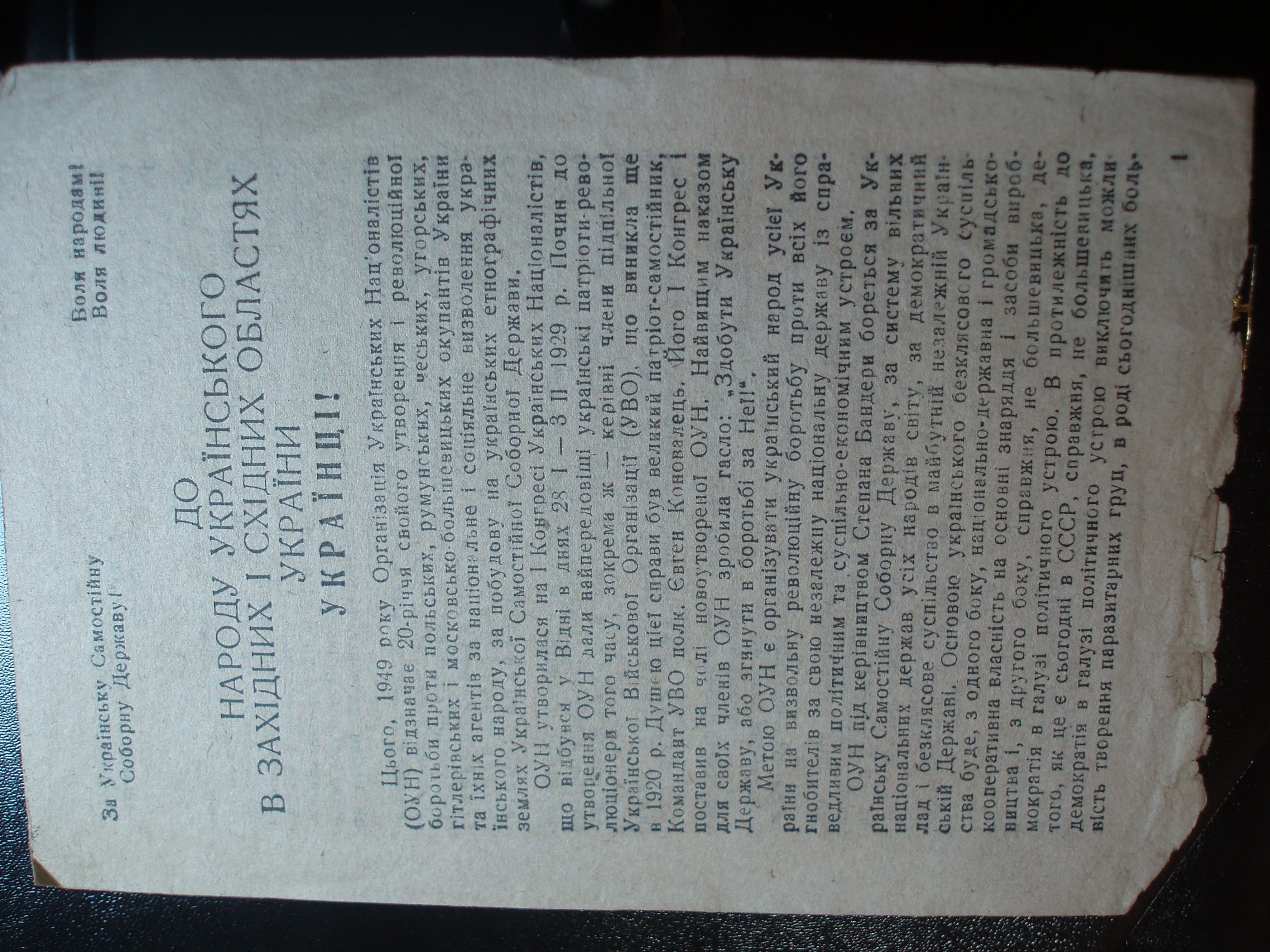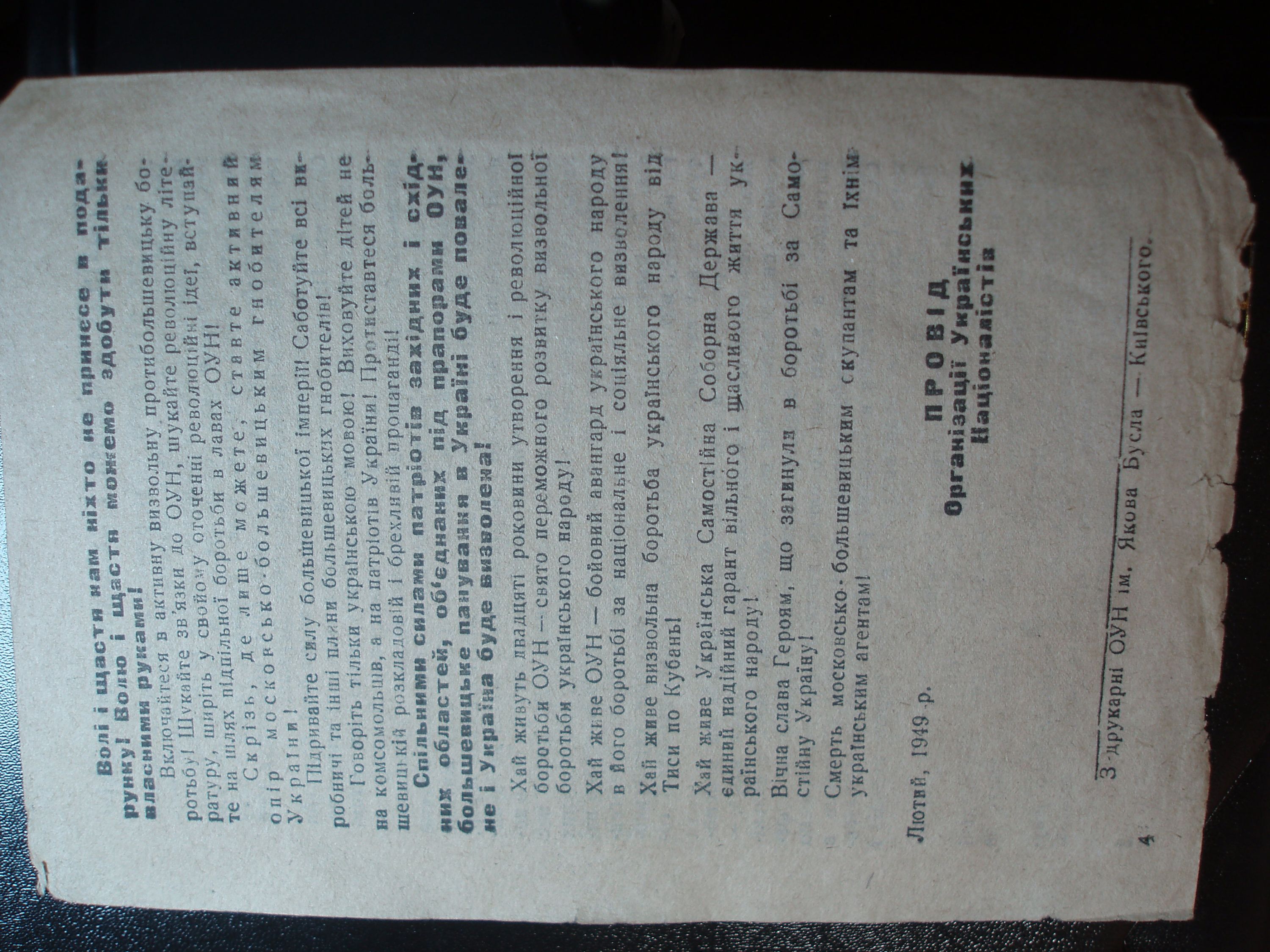 Декілька років тому на Вінничині була викопана гільза від снаряда, в якій було дуже багато добре збережених листівок ОУН. Одна дісталась і мені.