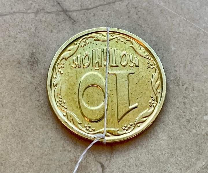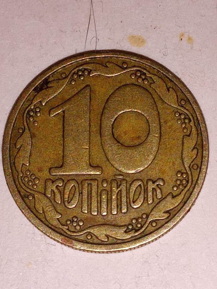 10 копійок, нібито звичайні, але біля першої та останньої "к" по 6-ть ягідок. Ітого 10 коп. за 100 грн.