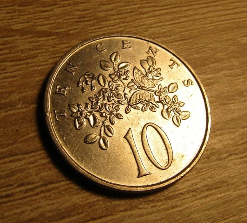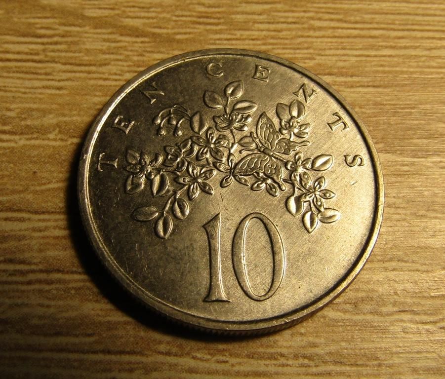 10 центов 1986 г. (Ямайка, остров), фауна и флора - бабочка (Парусник Гомера (лат. Papilio homerus)) на цветах.
